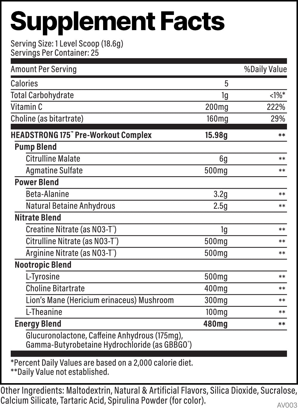 Introducing Headstrong 175 by Vitasport. This product is packed with all the same potent, in-demand pre-workout ingredients found in the increasingly popular Headstrong formula (we’re talking 2g N03-T® Nitrate Technology, 1.3g Nootropics, 6g Citrulline Malate, and 3.2g Beta-Alanine), but with only 175mg of caffeine and no other stimulants. You’ll still get all the pump, power, and focus you love, just in a “lower-stim” version.